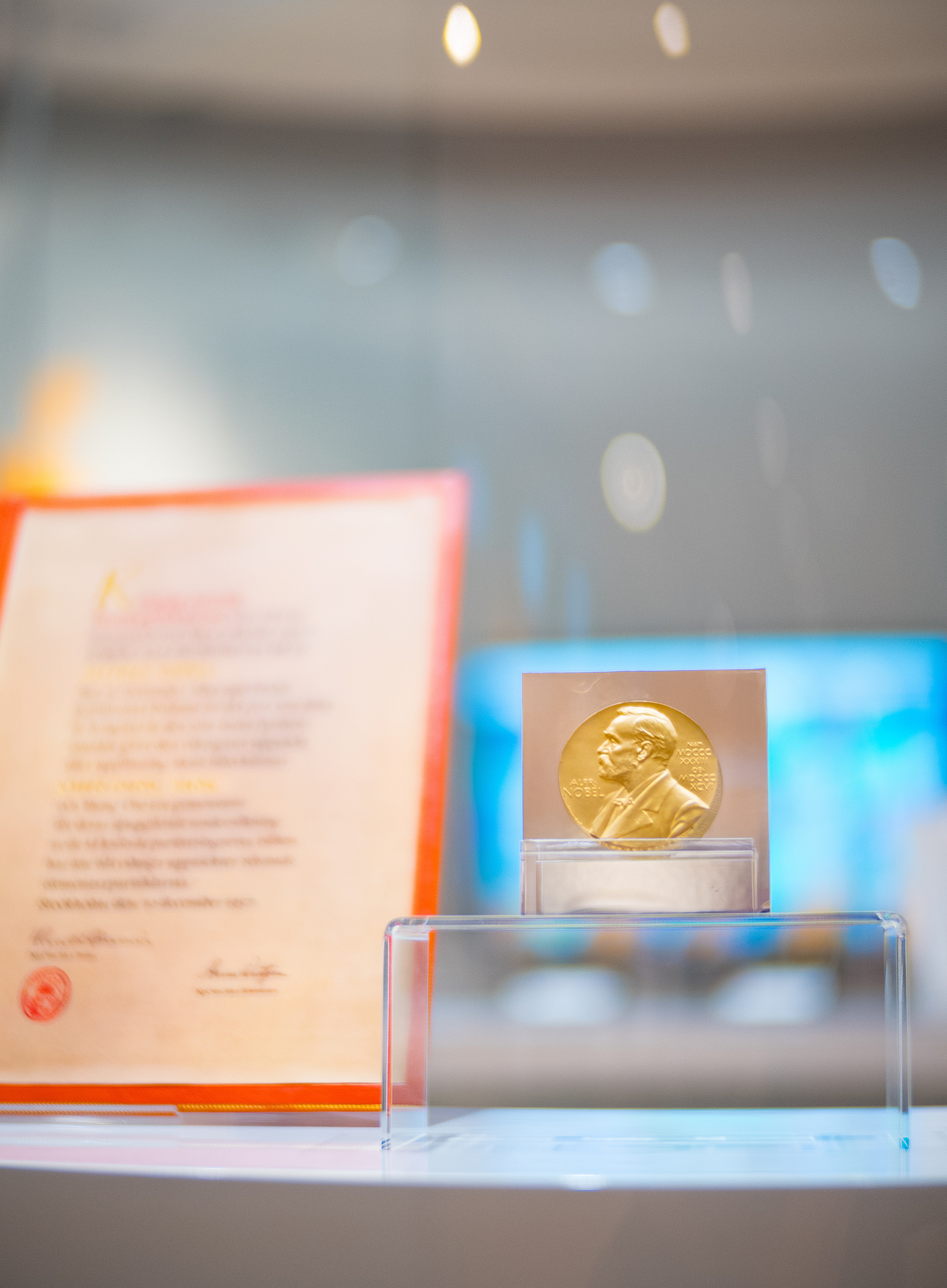 ▲10月19日,香港中文大学校史馆内展示杨振宁获得1957年诺贝尔物理学奖的证书、奖章等展品。图据视觉中国/中新社记者 侯宇 摄